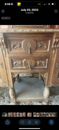 Beautiful antique buffet sideboard. This piece features intricate carvings, cabinet doors, and drawers, providing ample storage. Age Estimate: late 1800’s. Dovetail drawers. Solid and very heavy....