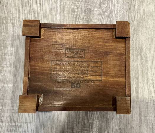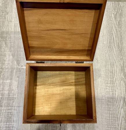 Vintage wooden cigar box in excellent condition. It is approximately 8” x 6.75” and 4” high.
