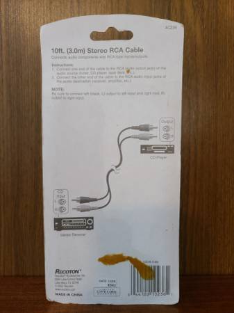 $3. Recoton #AC236 10 Ft. Stereo RCA Audio Cable Brand New [MSRP $6.99]