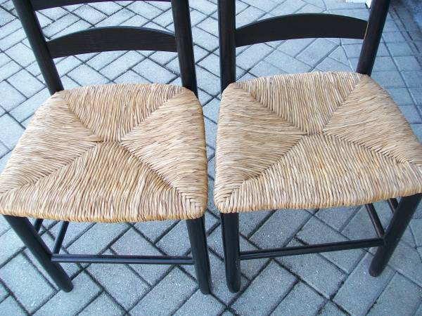 I have 2 ladderback chairs that need a little love. Seats are excellent but the base needs a paint job or a touch up. Very sturdy. $30.00 for both. Smoke free home. Cash and Carry If you need more...