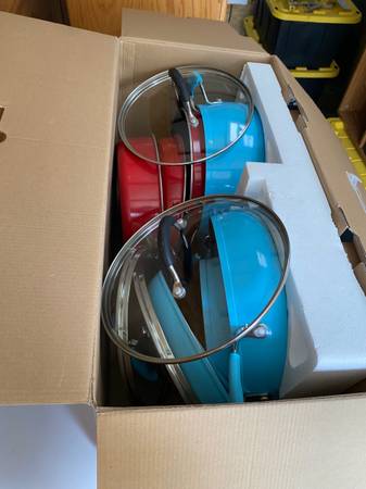 This is a full set of non stick pots and pans with some extras. It's in very good condition and will serve the next family for many years if taken care of. Have a Merry Christmas and enjoy a nice...