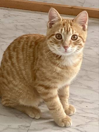 Beautiful little male ginger kitten, about 4 mths. Very socialized with other pets. Loving and friendly looking for a home, text