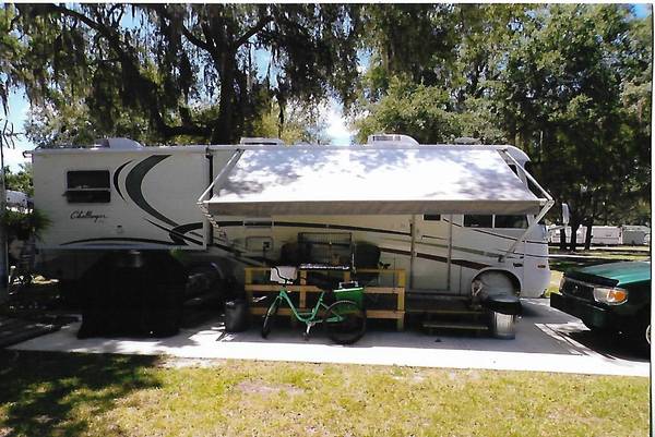 2001 35' Challenger Motor Home. Ford V-10 Triton W/68,000 miles and runs great, new tires last year also new breaks. New awning last year, new water heater, new A/C blowers in both roof A/C units and serviced. New sleeper sofa, new refrierator, new microwave, had roof done last year with no leaks. New TV`s 43" in living room, 32" in bedroom and 32" out side with all new cable. 5500 Generator, Bathroom has a tub/shower and bathroom all enclosed. Looks good and great live in, my wife and I live in it at a RV park were you can see that everything works like it should. Call 352-457-6630 Jeff. please no Text. Was asking $19,500. dropped to $17,000. OBO.